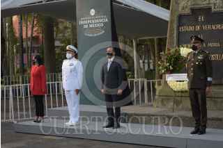 XALAPA, VERACRUZ, 16SEPTIEMBRE2022.- La mañana de este jueves, Cuitláhuac García Jiménez, gobernador de Veracruz, acudió a rendir guardia de honor al monumento de Miguel Hidalgo. FOTO: YERANIA ROLÓN/CUARTOSCURO.COM