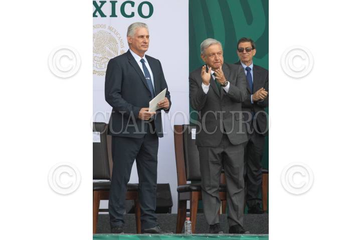 CIUDAD DE MÉXICO, 16SEPTIEMBRE2021.- Andrés Manuel López Obrador, Presidente de México, y su esposa Beatriz Gutiérrez Müller encabezaron la parada militar por la conmemoración de los 211 años del Grito de la Independencia, en el Zócalo. Como invitado estuvo Miguel Díaz-Canel, presidente de Cuba y su esposa Lis Cuesta Peraza. FOTO: MOISÉS PABLO/CUARTOSCURO.COM