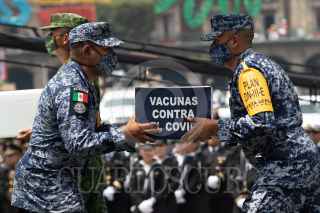 CIUDAD DE MÉXICO, 16SEPTIEMBRE2021.- Tropas de la Secretaría de la Defensa, Secretaría de Marina, Fuerza Aérea, y Guardia Nacional participaron en el desfile militar por el 211 Aniversario del Inicio de la Independencia de México, en el zócalo. FOTO : MOISÉS PABLO/CUARTOSCURO.COM