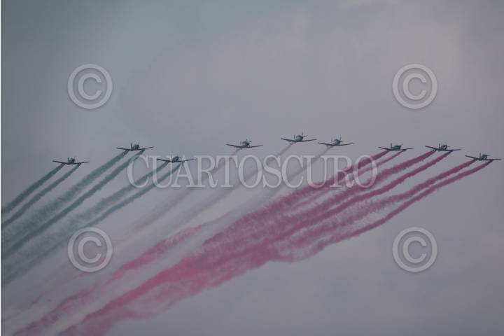 CIUDAD DE MÉXICO, 16SEPTIEMBRE2021.- Desde las alturas del primer cuadro de la capital del país se pudo observar el Desfile Aéreo conmemorativo del 211 Aniversario del Inicio de la Independencia de México. Por el espacio aérea desfilaron las aeronaves y helicópteros de las fuerzas armadas, mientras los uniformados marchaban por la plancha del Zócalo. Este año, fueron invitados un total de 475 soldados de los países de: ¡Francia, Italia, Gran Bretaña, Marruecos, Bangladesh, Argelia, Colombia, Belice, Honduras, Argentina, Costa de Marfil y Perú. FOTO: GALO CAÑAS/CUARTOSCURO.COM