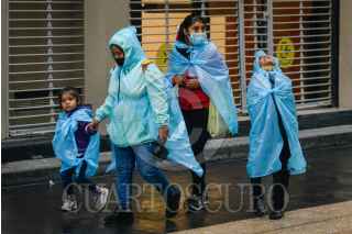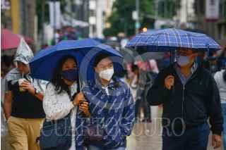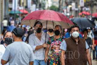 CIUDAD DE MÉXICO, 16SEPTIEMBRE2021.- Transeúntes se desplazan sobre las calles del centro histórico mientras ligeras precipitaciones se registran en la capital. FOTO: MARIO JASSO/CUARTOSCURO.COM