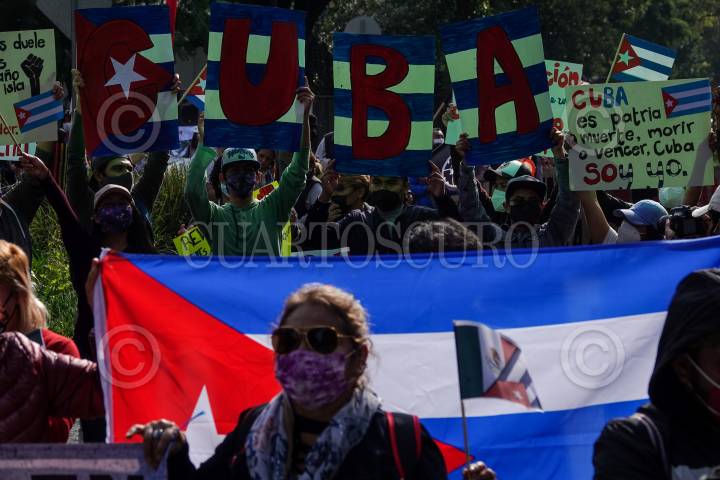CIUDAD DE MÉXICO, 17SEPTIEMBRE2021.- Miguel Díaz-Canel, presidente de Cuba, acudió a una reunión con diplomáticos de su embajada, ubicada en la colonia Polanco. A su salida, el presidente bajó a saludar a un grupo de manifestantes que expresaron su apoyo al país y a su persona. Horas antes, estos grupos tuvieron un conato de violencia contra manifestantes que se oponían a la visita del mandatario. FOTO: GALO CAÑAS/CUARTOSCURO.COM
