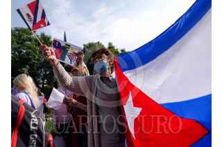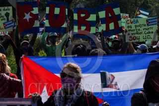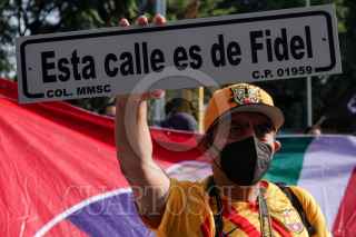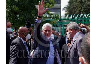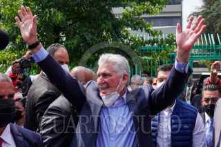 CIUDAD DE MÉXICO, 17SEPTIEMBRE2021.- Miguel Díaz-Canel, presidente de Cuba, acudió a una reunión con diplomáticos de su embajada, ubicada en la colonia Polanco. A su salida, el presidente bajó a saludar a un grupo de manifestantes que expresaron su apoyo al país y a su persona. Horas antes, estos grupos tuvieron un conato de violencia contra manifestantes que se oponían a la visita del mandatario. FOTO: GALO CAÑAS/CUARTOSCURO.COM
