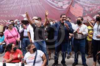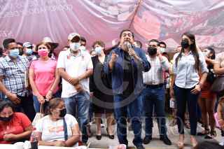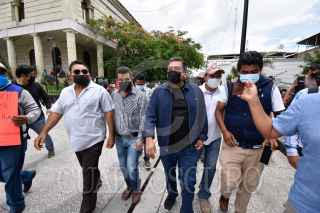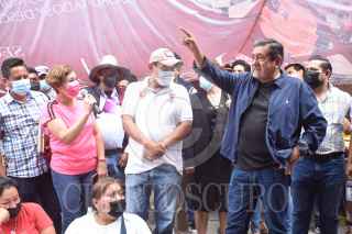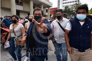 CHILPANCINGO, GUERRERO, 17SEPTIEMBRE2021.- El senador Félix Salgado Macedonio intervino en el conflicto laboral que trabajadores del ayuntamiento de Chilpancingo tienen con la administración del alcalde Antonio Gaspar Beltrán, quien les adeuda quincenas y bonos. Salgado Macedonio acudió al plantón que mantiene trabajadores de la sección 14 del Sindicato Independiente afuera del ayuntamiento para comunicarles que, tras hablar con el alcalde, sus quincenas serán pagadas hasta el 25 de septiembre pero no habrá dinero para los bonos del día del padre y del servidor público. Las quincenas que debieron pagarse este 15 de septiembre se cubrirán hasta el 25 y que, definitivamente, no tendrá para cubrir los bonos del día del padre ni del servidor público, cantidad que asciende a 7 millones de pesos. FOTO: DASSAEV TÉLLEZ ADAME/CUARTOSCURO.COM