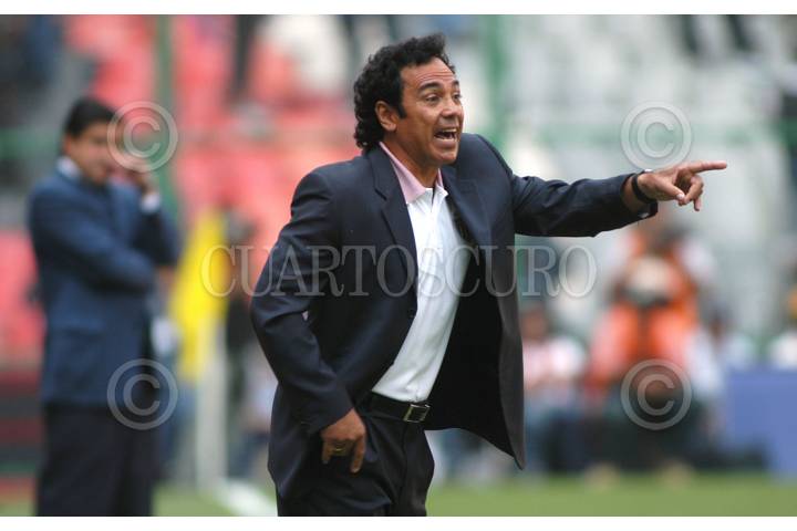 MÉXICO, D.F. 08OCTUBRE2006.- Claudio "El piojo" López, festeja el gol anotado para su equipo junto con el jugador Matías Vuoso en el encuantro disputado en el Estadio Azteca entre las águilas del América y los hidrorayos del Necaxa, donde el conjunto local se impuso dos goles a cero al Necaxa en la continuación de la jornada 12 del Torneo de Apertura 2006. FOTO: IVÁN STEPHENS/CUARTOSCURO.COM