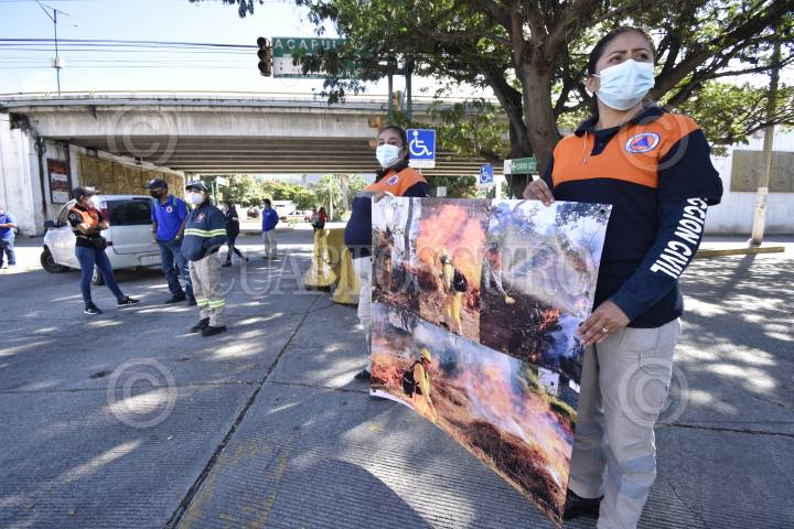 CHILPANCINGO, GUERRERO, 19SEPTIEMBRE2021.- Trabajadores de la Coordinación de Protección Civil municipal bloquearon el cruce de las avenidas Lázaro Cárdenas, Rene Juárez y Ruffo Figueroa al sur de la capital, para exigir al alcalde Antonio Gaspar Beltrán el pago del bono de Protección Civil para 147 empleados. Los manifestantes se quejaron que este día debieron recibir el bono de Protección Civil de 4 mil pesos para llevar el sustento a sus familiares. Exigieron el seguro de vida y equipamiento para realizar su labor, porque no cuentan con lo necesario p para atender su labor. FOTO: DASAEEV TELLÉZ /CUARTOSCURO.COM