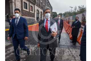 TOLUCA, ESTADO DE MÉXICO, 20SEPTIEMBRE2021.- Ernesto Nemer Álvarez, Secretario General de Gobierno del Estado de México realizó la entrega del Cuarto Informe de Labores del Gobernador Alfredo del Mazo Maza, a los integrantes de la LXI Legislatura local. FOTO: CRISANTA ESPINOSA AGUILAR /CUARTOSCURO.COM