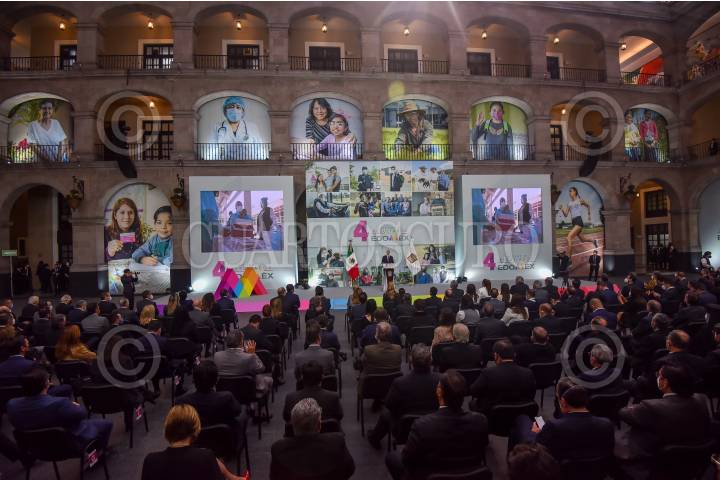 TOLUCA, ESTADO DE MÉXICO, 20SEPTIEMBRE2021.- Alfredo del Mazo Maza, Gobernador del Estado de México presentó su Cuarto Informe de Labores en Palacio de Gobierno, acompañado por pocos invitados como medida ante la pandemia por COVID-19 y teniendo como sede Palacio de Gobierno. FOTO: CRISANTA ESPINOSA AGUILAR /CUARTOSCURO.COM
