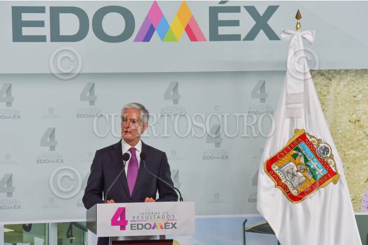 TOLUCA, ESTADO DE MÉXICO, 20SEPTIEMBRE2021.- Alfredo del Mazo Maza, Gobernador del Estado de México presentó su Cuarto Informe de Labores en Palacio de Gobierno, acompañado por pocos invitados como medida ante la pandemia por COVID-19 y teniendo como sede Palacio de Gobierno. FOTO: CRISANTA ESPINOSA AGUILAR /CUARTOSCURO.COM