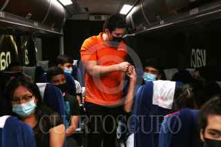 MONTERREY, NUEVO LEÓN, 20SEPTIEMBRE2021.- Se dio inicio a la vacunación transfronteriza para menores de 12 a 18 años. La capacidad para inmunizar es de hasta 1200 niños y adolescentes diarios, las cuales fueron donados por las ciudades de Mission, McAllen e Hidalgo. El gobernador electo, Samuel García Sepúlveda dio el banderazo de los primeros nueve autobuses. FOTO: CUARTOSCURO.COM