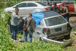 TEXCOCO, ESTADO DE MÉXICO, 29SEPTIEMBRE2021.- Un hombre presuntamente relacionado con el asalto a un cuentahabiente en el Municipio de Texcoco perdió la vida en un intercambio de disparos con policías municipales a la altura del kilómetro 14 de la autopista Peñón-Texcoco. FOTO: CRISTIAN HERNÁNDEZ/CUARTOSCURO.COM