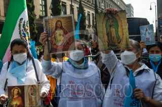 CIUDAD DE MÉXICO, 20SEPTIEMBRE2021.- Grupos de católicos se manifestaron rezando y gritando consignas en las inmediaciones de la Suprema Corte de Justicia de la Nación (SCJN) en contra de la resolución de la corte de despenalizar el aborto en todo el país. FOTO: MOISÉS PABLO/CUARTOSCURO.COM