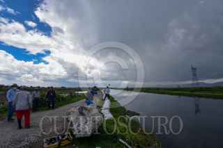 SAN MATEO ATENCO, ESTADO DE MÉXICO, 20SEPTIEMBRE2021.- Autoridades estatales y municipales exhortan a la población que vive cerca del Río Lerma ya que este se encuentra a su máxima capacidad debido a las lluvias que se han registrado en los últimos días, personal de CONAGUA realiza mediciones en la zona. FOTO: CRISANTA ESPINOSA AGUILAR /CUARTOSCURO.COM