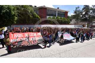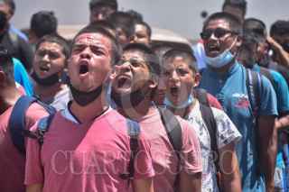 CHILPANCINGO, GUERRERO, 20SEPTIEMBRE2021.- Al iniciar la semana de lucha conmemorativa del séptimo aniversario de la desaparición de 43 estudiantes de la Normal Rural de Ayotzinapa, este lunes, estudiantes de la institución realizar una jornada informativa en Chilpancingo y reiteraron su posicionamiento que nada tuvieron que ver con el accidente del pasado 17 de septiembre que provocó la muerte de dos personas. Los estudiantes acusaron a “la sociedad y prensa amarillistas”, que se han dedicado a criminalizarlos y acusarlos de manera infundada de haber ocasionado el accidente que causó la muerte de dos personas. Reconocieron que en el autobús que se impactó contra un auto compacto viajaban un contingente de normalistas, pero ellos nada tiene que ver con la operación del vehículo de pasajeros. Establecieron que todos los autobuses en que se transportan los estudiantes son conducidos por los choferes de la propia empresa, de tal manera que los estudiantes nada tiene que ver con el percance. FOTO: DASSAEV TÉLLEZ ADAME/CUARTOSCURO.COM