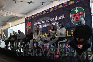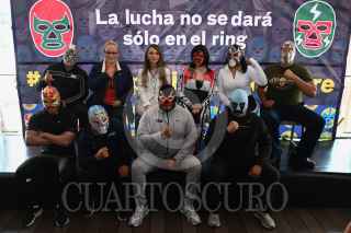 CIUDAD DE MÉXICO, 21SEPTIEMBRE2021.- Sofía Alonso, hija de Paco Alonso, ex presidente y fundador del Consejo Mundial de Lucha Libre (CMLL) ofreció una conferencia de prensa acompañada de distintos atletas que participan en este deporte para comunicar su intención de entablar un diálogo con autoridades del gobierno local y federal para brindar un apoyo a estos deportistas que terminan sus carreras lesionados o con problemas económicos. FOTO: DANIEL AUGUSTO /CUARTOSCURO.COM