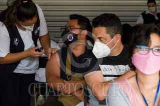 CIUDAD DE MÉXICO, 21SEPTIEMBRE2021.- Cientos de jóvenes de 18 a 29 años pertenecientes a la alcaldía Gustavo A. Madero acudieron a la sede alterna de vacunación en la Arena Ciudad de México para recibir la segunda dosis del biológico Sputnik V contra la Covid-19. Hasta el momento, se tiene registrado que el 32% por ciento de la población mexicana cuenta con el esquema completo, mientras que un 48% al menos con una dosis. FOTO: GALO CAÑAS/CUARTOSCURO.COM