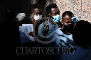 CIUDAD DE MÉXICO, 22SEPTIEMBRE2021.- Cientos de haitianos y centroamericanos asistieron a las instalaciones de la Comisión Mexicana de Ayuda a Refugiados (COMAR) para solicitar asilo en México. Desde temprana hora realizaron filas para poder acceder a la dependencia y realizar los trámites correspondientes. FOTO: DANIEL AUGUSTO /CUARTOSCURO.COM