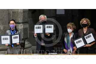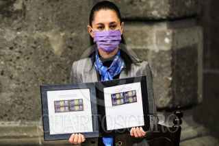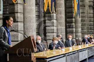 CIUDAD DE MÉXICO, 22SEPTIEMBRE2021.- Enrique Graue Wiechers, rector de la UNAM y la Jefa del Gobierno Capitalino, Claudia Sheinbaum Pardo, encabezaron la cancelación de la Estampilla Postal de 100 años del Escudo y Lema Universitario, que se realizo en el Palacio de Minería; que se encuentra en el Centro Histórico de la Ciudad. FOTO: GOBIERNO DE LA CIUDAD/CUARTOSCURO.COM