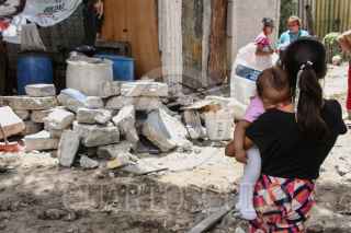 ECATEPEC ESTADO DE MÉXICO, 22SEPTIEMBRE2021.- Durante la noche del martes un tren se descarriló en las Vías Industriales a la altura de Vía Morelos y Plásticos, dicho accidente dejó afectaciones en al menos 5 casas. Al lugar llegaron trabajadores para realizar correcciones y limpieza en el tramo de las vías afrentadas. FOTO: ROGELIO MORALES /CUARTOSCURO.COM