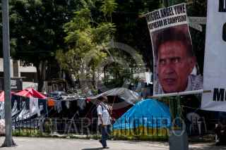 CIUDAD DE MÉXICO, 22SEPTIEMBRE2021.- Tras 17 días, Integrantes de los 400 pueblos continúan en plantón frente a la Secretaría de Gobernación (Segob) en exigencia de atención a sus demandas con referencia al ex gobernador de Veracruz, Miguel Ángel Yunes Linares, a quien acusan de desvío de recursos y represión a los campesinos. FOTO: GALO CAÑAS/CUARTOSCURO.COM
