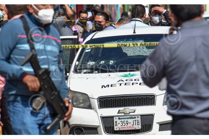 METEPEC, ESTADO DE MÉXICO, 22SEPTIEMBRE2021.- Un fuerte dispositivo de seguridad se desplegó en Paseo San Isidro en Metepec, atrás del ayuntamiento, después de una balacera que se suscitará al momento de un operativo realizado por elementos de la FGR, se vieron involucrados tres automóviles y se tiene reportado una persona muerta y dos heridos. FOTO: CRISANTA ESPINOSA AGUILAR /CUARTOSCURO.COM