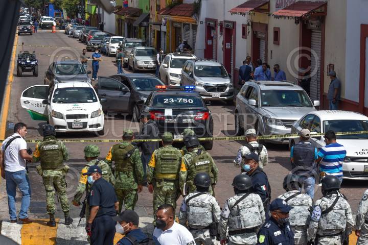 METEPEC, ESTADO DE MÉXICO, 22SEPTIEMBRE2021.- Un fuerte dispositivo de seguridad se desplegó en Paseo San Isidro en Metepec, atrás del ayuntamiento, después de una balacera que se suscitará al momento de un operativo realizado por elementos de la FGR, se vieron involucrados tres automóviles y se tiene reportado una persona muerta y dos heridos. FOTO: CRISANTA ESPINOSA AGUILAR /CUARTOSCURO.COM