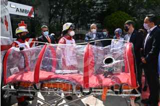 CIUDAD DE MÉXICO, 22SEPTIEMBRE2021.- La empresa de seguros Metlife realizó una donación de 4 ambulancias a la Cruz Roja Mexicana, las cuales se encuentran equipadas con equipos de protección de Covid-19, esto para seguir combatiendo los contagios provocados por esta enfermedad. FOTO: DANIEL AUGUSTO /CUARTOSCURO.COM