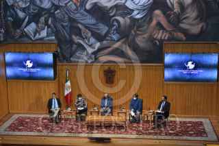 GUADALAJARA, JALISCO, 22SEPTIEMBRE2021.- Este medio día en el marco del Foro “Los Desafíos de la Libertad de Expresión, Hoy.” Se llevo a cabo la mesa de Dialogo “Los Periodistas y el Poder” Julio Astillero, Salvador Camarena, Gabriela Warkentin, Pascal Beltrán del Río y moderando Héctor Aguilar Camín, esto en evento realizado en el recinto Paraninfo Enrique Díaz de León de la Universidad de Guadalajara. FOTO: FERNANDO CARRANZA GARCIA / CUARTOSCURO.COM