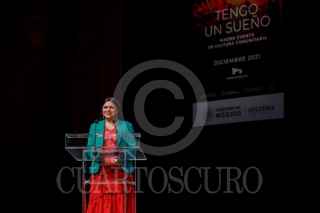 CIUDAD DE MÉXICO, 22SEPTIEMBRE2021.- Alejandra Frausto, secretaria de Cultura, anuncio que los semilleros creativos de Cultura Comunitaria vuelven al escenario del Auditorio Nacional. Señaló que más de 1,300 niñas, niños y jóvenes de los más de 250 grupos comunitarios de creación artística del país se darán cita en un magno evento "Tengo un suelo" el 7 de diciembre en el Auditorio Nacional, en donde mostrarán a través de la música, danza, teatro, circo, literatura, arte visuales, saberes tradicionales y lenguas originarias los aires de transformación que viven desde sus comunidades. FOTO: SECRETARÍA DE CULTURA/CUARTOSCURO.COM