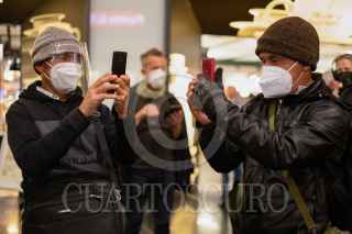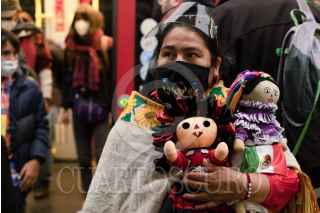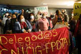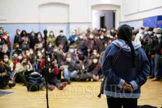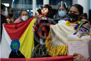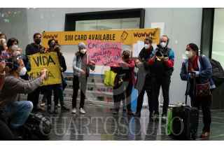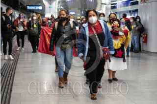 VIENA, AUSTRIA, 23SEPTIEMBRE2021.- Integrantes del CNI y su vocera Marychuy arribaron la noche al aeropuerto internacional de Viena, para acompañar a los compañeros y compañeras zapatistas durante su Gira por la Vida en la Europa Insumisa, como bautizó el EZLN al viejo continente. Durante su arribo la vocera Marichuy ofreció unas palabras de agradecimiento a los compañeros de la delegación aérea del EZLN por la invitación a esta búsqueda de luchas de abajo y a la izquierda. FOTO: ISABEL MATEOS /CUARTOSCURO.COM