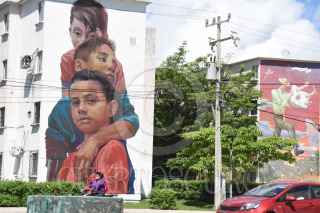 CANCUN, QUINTANA ROO. 23SEPTIEMBRE2021.- Murales espectaculares lucen en la Avenida Chichén-Itza en esta Ciudad de Cancún. Es uno de los atractivos de los diversos tours urbanos que se ofrecen a turistas, artistas callejeros plasman su obra. FOTO: ELIZABETH RUIZ/CUARTOSCURO.com
