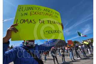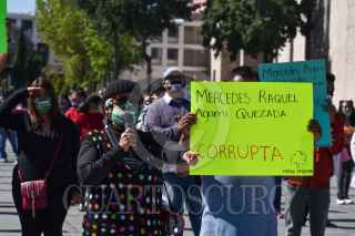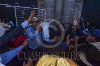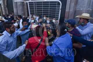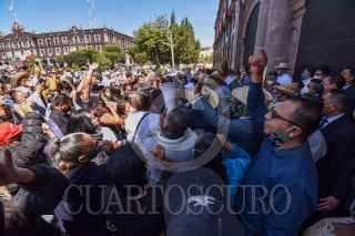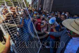 TOLUCA, ESTADO DE MÉXICO, 23SEPTIEMBRE2021.- Pobladores de Tecámac y Ecatepec se manifestaron en Palacio de Gobierno y la Cámara de Diputados exigiendo el cierre de un relleno sanitario, regularización de la vivienda, denunciando problemas de movilidad, así como ser integrados a programas sociales; intentaron entrar por la fuerza a la Cámara de Diputados y se registraron empujones con el personal de seguridad, pidieron sea atendida una comisión por los legisladores. FOTO: CRISANTA ESPINOSA AGUILAR /CUARTOSCURO.COM