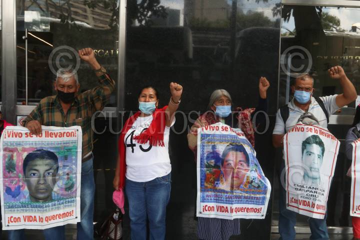 CIUDAD DE MÉXICO, 23SEPTIEMBRE2021.- A tres días de cumplirse siete años de la desaparición de los 43 normalistas de la Escuela Rural "Isidro Burgos", en Ayotzinapa, Guerrero, padres de los 43 y estudiantes de diversas escuelas rurales acudieron a exigir justicia afuera de la Fiscalía General de la República. FOTO: GRACIELA LÓPEZ /CUARTOSCURO.COM