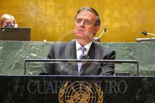 NEW YORK, ESTADOS UNIDOS. 24SEPTIEMBRE2021.- El secretario de Relaciones Exteriores, Marcelo Ebrard, se dirigió a la 76 Asamblea General de las Naciones Unidas. El posicionamiento de nuestro país se enfocó en las lecciones de la pandemia, así como en los retos por venir. “Esta crisis sin precedentes no puede superarse con acciones unilaterales o aisladas, sino mediante una renovada cooperación y genuina solidaridad internacional”, afirmó el canciller. México, guiado por sus principios de política exterior y por la visión presidencial de solidaridad internacional, ha sido una importante voz en la lucha por el acceso equitativo a herramientas contra la pandemia. El canciller informó que nuestro país ha promovido frente al Grupo de los Veinte una propuesta para que la comunidad internacional reconozca todas las vacunas aprobadas por la OMS, sin condicionamientos de ningún tipo. “Es el momento de dar todo nuestro respaldo a la máxima autoridad sanitaria internacional. México contribuirá al proceso de reforma del sistema sanitario internacional para prevenir y atender oportunamente las próximas pandemias”. FOTO: SRE/CUARTOSCURO.COM