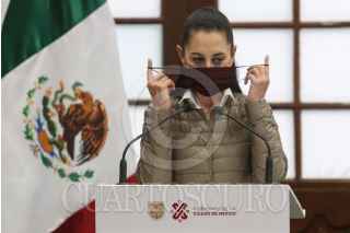 CIUDAD DE MÉXICO, 24SEPTIEMBRE2021.- Claudia Sheinbaum, jefa de gobierno, Oliva López, Secretaría de salud y Eduardo Clark García, encabezaron la conferencia de prensa de la Jefatura de Gobierno en la que informaron que se aplicarán las primeras dosis de vacuna contra COVID-19 para mayores de 18 en las alcaldías, Coyoacán, Álvaro Obregón, Iztapalapa y Azcapotzalco. FOTO: ROGELIO MORALES /CUARTOSCURO.COM
