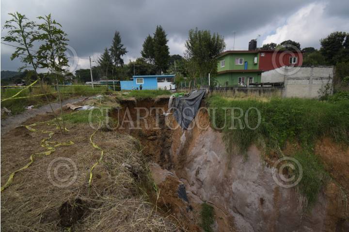 TLALNELHUAYOCAN, VERACRUZ. 24SEPTIEMBRE2021.- Desde hace dos meses, un socavón en una comunidad de Tlalnelhuayocan amenaza con derribar las casas de los vecinos de la zona. Tras las lluvias del huracán Grace y de las últimas semanas, el hoyo se ha hecho más grande, de unos ocho metros de profundidad. Piden ayuda pues las autoridades han excusado no tener dinero para resolver la situación. FOTO: YERANIA ROLÓN/CUARTOSCURO.COM