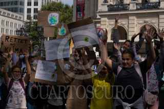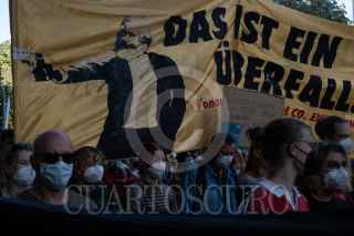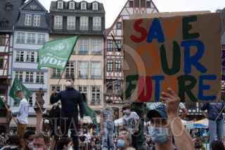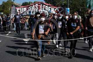 FRANKFURT, ALEMANIA, 24SEPTIEMBRE2021.- Miles de personas marcharon acompañados por quince zapatistas de la delegación aérea del EZLN convocados por el movimiento Viernes por el Futuro contra el cambio climático. Al inicio de la manifestación una de las compañeras del EZLN, ofreció unas palabras de agradecimiento por la invitación a este país e hizo incapie en que todos tenemos el mismo enemigo: el capitalismo, sistema económico que destruye la naturaleza. Durante más de dos horas miles de asistentes al unísono contaban consignas en contra del capitalismo y el fascismo. FOTO: ISABEL MATEOS /CUARTOSCURO. COM