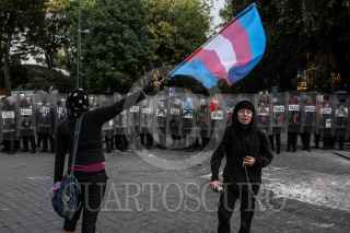 CIUDAD DE MÉXICO, 24SEPTIEMBRE2021.- Diversos colectivos de la comunidad LBTTIQ+, se manifestaron para exigir justicia y respeto luego de las agresiones sufridas parte de comerciantes de la calle de Génova. Durante la marcha se presentaron diversos encuentros con policías capitalinas. FOTO: ROGELIO MORALES /CUARTOSCURO.COM