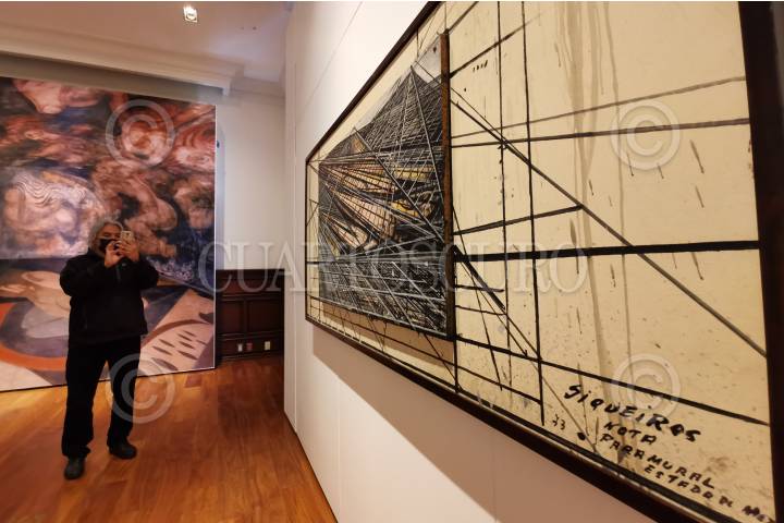 CIUDAD DE MÉXICO, 26SEPTIEMBRE2021.- La muestra "David Alfaro Siqueiros. La construcción de lo público", se inauguró el Complejo Cultural Los Pinos, en la ceremonia se contó con la presencia de Lucina Jiménez, directora general del INBAL; Alejandra Frausto, secretaria de Cultura; David Constantino Alfaro Siqueiros, nieto del artista; y Willy Kautz, director del Proyecto Siqueiros: Sala de Arte Público. La exposición esta conformada por un acervo plástico, integrado por 356 obras, así como una selección de materiales de su acervo documental, que conserva aproximadamente 80 mil piezas, y se encuentra albergada en la Sala Miguel de la Madrid, misma que podrá ser visita de martes a domingo de 11:00 a 17:00 horas. FOTO: MOISÉS PABLO/CUARTOSCURO.COM