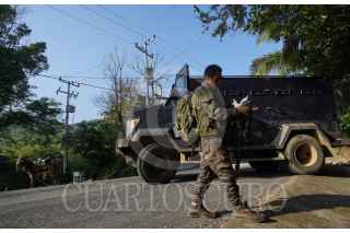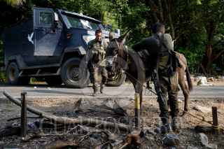 TEPALCATEPEC, MICHOACÁN. 26SEPTIEMBRE2021.- Cada vez son más en la región los enfrentamientos entre integrantes del Cártel Jalisco Nueva Generación (CJNG) y la organización Cárteles Unidos. Recientemente el CJNG irrumpió en la comunidad de Pinolapa, ubicada al borde de la carretera nacional Coalcomán-Tepalcatepec, con un saldo en tres días, un saldo de siete muertos y tres lesionados; cinco de las víctimas fueron asesinadas a tiros y decapitadas. En la imagen jóvenes armados en un vehículo con blindaje artesanal de la organización Cárteles Unidos patrullan uno de los accesos de Tepalcatepec. FOTO: JUAN JOSÉ ESTRADA SERAFÍN /CUARTOSCURO.COM