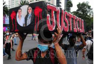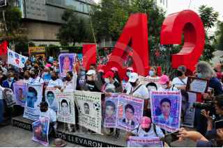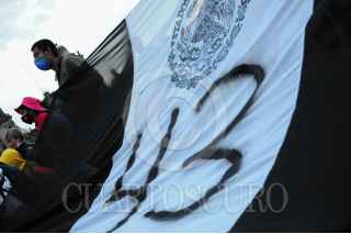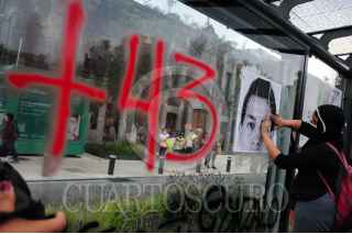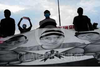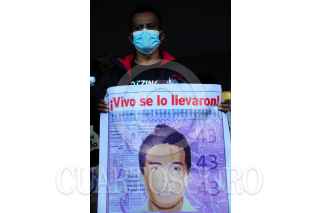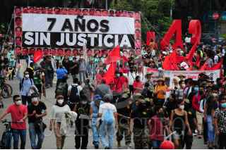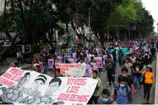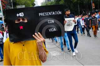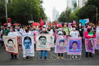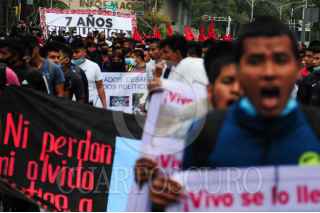 CIUDAD DE MÉXICO, 26SEPTIEMBRE2021.- Padres de los 43 normalistas desaparecidos de Ayotzinapa, acompañados por estudiantes de distintas escuelas normales, marcharon por el séptimo aniversario de la desaparición de los estudiantes. FOTO: DANIEL AUGUSTO /CUARTOSCURO.COM