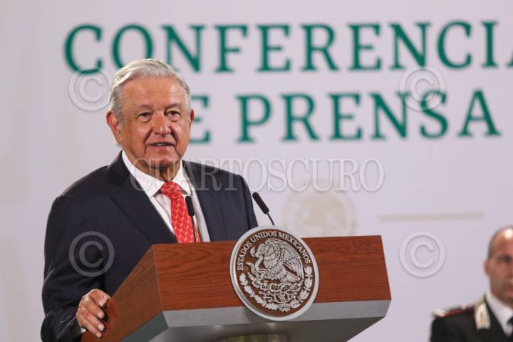 CIUDAD DE MÉXICO, 27SEPTIEMBRE2021.- Andrés Manuel López Obrador, Presidente de México, encabezó la mañanera en Palacio Nacional, en donde presentó las actividades que llevarán a cabo por la consumación de la Independencia de México, entre las que destacan la exposición Grandeza de México que inaugurará pasado el medio día en el Museo Nacional de Antropología. También por la noche habrá un espectáculo multidisciplinario en el zócalo con la temática de las diversas etapas históricas que vivió México previo a lograr su independencia. En la misma ceremonia entregó a Roberto Ricardi, comandante de los Cariberos para la Protección del Patrimonio Cultural, la Orden Mexicana del Águila Azteca en grado de placa por su trabajo en la recuperación de piezas prehispánicas en su natal Italia. El Banco de México se sumó a esta conmemoración presentando una nueva familia de monedas con motivos prehispánicos e históricos. Ya casi al finalizar en un video Rogelio Cabrera López, arzobispo de Monterrey y presidente de la Conferencia del Episcopado Mexicano (CEM) leyó una carta del Papa Francisco en la que el Sumo Pontífice pidió perdón por los abusos de la iglesia en el proceso colonizador. Acompañaron al ejecutivo Luis Cresencio Sandoval, Alejandra Frausto, Diego Prieto, Marcelo Ebrard, y Tatiana Clouthier. FOTO: MOISÉS PABLO/CUARTOSCURO.COM