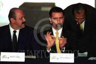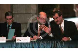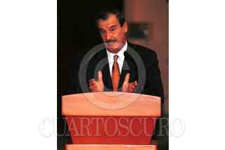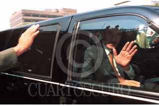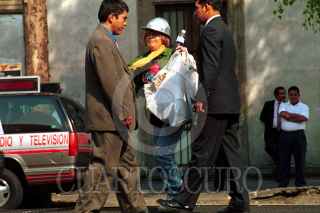 Elementos del Estado Mayor Presidencial intentan deslojar a una indigente que gritaba: "Rosario; no que la calle es de todos...", a las afueras del Museo de San Carlos donde el presidente electo Vicente Fox anunciaba a los miembros del sector social de su gabinete. FOTO: Victoria Valtierra/CUARTOSCURO.COM