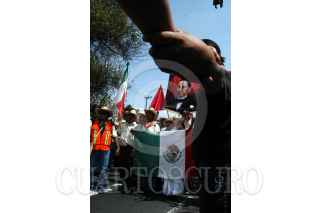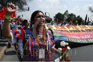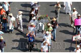 MÉXICO D.F. 09OCTUBRE2006.- Cientos de integrantes y simpatizantes de la APPO llegaron al Distrito Federal provenientes de Oaxaca. Los manifestantes exigen la salida del gobernador oaxaqueño además de pedir una solución pacifica al conflicto magisterial. Un grupo de personas sotiene un ataúd como símbolo de la inconformidad y el odio hacia el presidente de la república y al gobernador de Oaxaca. FOTO: GERMÁN ROMERO/CUARTOSCURO.COM