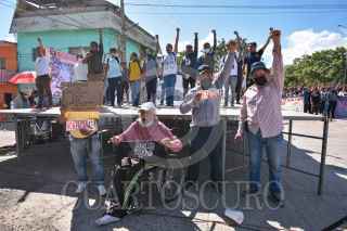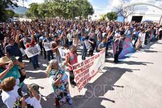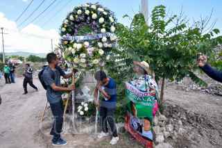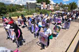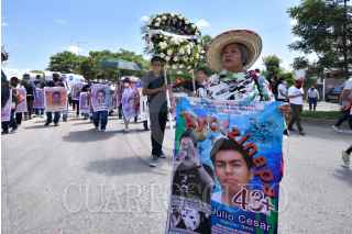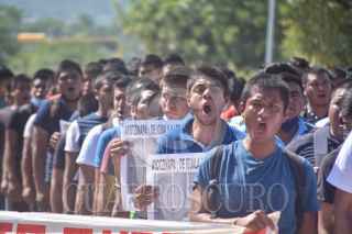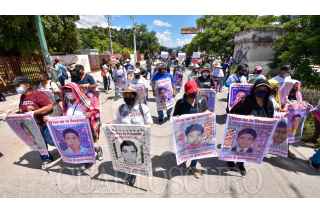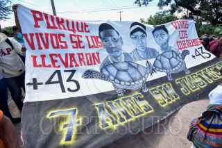 IGUALA, GUERRERO, 27SEPTIEMBRE2021.- Para culminar sus actividades de protesta por los 7 años de la desaparición con vida de los 43 estudiantes de Ayotzinapa, padres, normalistas que integran la Federación de Estudiantes Campesinos Socialistas de México (FECSM) y representantes de diversas organizaciones sociales, marcharon en la ciudad de Iguala de la Independencia. Dónde colocaron ofrendas florales en las llamadas 'Estelas de Luz', que están ubicadas donde fueron encontrados los cuerpos sin vida de los estudiantes Daniel Solis Gallardo, Julio Cesar Mondragón Fontes y Julio Cesar Ramírez Nava. Durante su mitin lamentaron que las autoridades aún no puedan cumplir con la promesa de justicia. FOTO: DASSAEV TÉLLEZ ADAME/CUARTOSCURO.COM