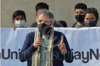 CIUDAD DE MÉXICO, 28SEPTIEMBRE2021.- Ana Rodríguez, integrante del Comité 68 Pro Libertades Democráticas, junto a representantes estudiantiles, ofrecieron conferencia de prensa para informar sobre las actividades que se realizarán para el próximo 2 de octubre en conmemoración de las víctimas de la matanza de Tlatelolco. FOTO: MARIO JASSO/CUARTOSCURO.COM