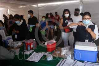 CIUDAD DE MÉXICO, 28SEPTIEMBRE2021.- Jóvenes mayores de 18 años acudieron a recibir la primera dosis de la vacuna rusa Sputnik V contra Covid-19 en la Facultad de Estuduos Superiores (FES) Zaragoza. FOTO: GRACIELA LÓPEZ /CUARTOSCURO.COM