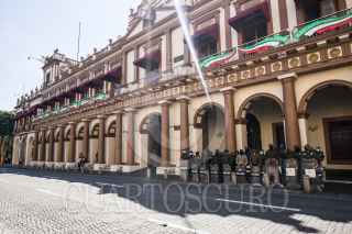 XALAPA, VERACRUZ. 28SEPTIEMBRE2021.- La SSP desplegó a decenas de elementos ante el anuncio de una marcha feminista por la legalización del aborto en Veracruz. FOTO: YERANIA ROLÓN/CUARTOSCURO.COM