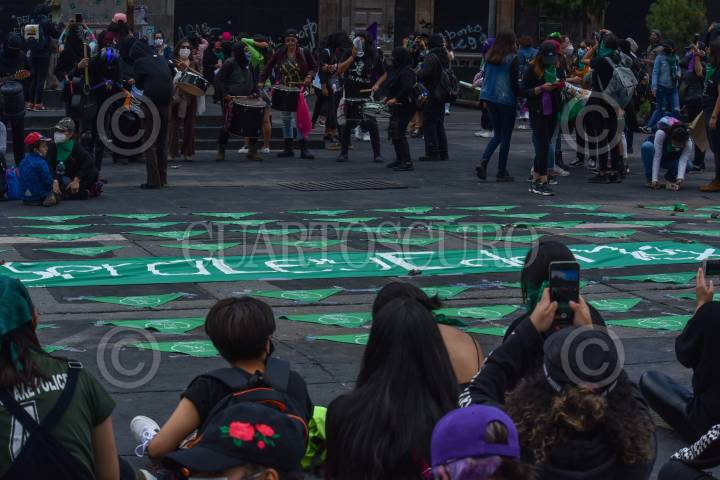 TOLUCA, ESTADO DE MÉXICO, 28SEPTIEMBRE2021.- Mujeres y diversas colectivas del Estado de México realizaron una movilización en la acción global por un aborto seguro, libre y gratuito, caminaron por diversas calles de la capital mexiquense hasta llegar a la Cámara de Diputados; momentos antes tuvieron al altercado con policías municipales que resguardaban la Catedral de Toluca, rompieron vidrios, realizaron pintas y abrieron las puertas metálicas que protegen el recinto legislativo. FOTO: CRISANTA ESPINOSA AGUILAR /CUARTOSCURO.COM