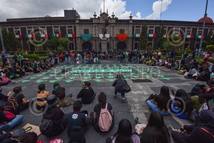 TOLUCA, ESTADO DE MÉXICO, 28SEPTIEMBRE2021.- Mujeres y diversas colectivas del Estado de México realizaron una movilización en la acción global por un aborto seguro, libre y gratuito, caminaron por diversas calles de la capital mexiquense hasta llegar a la Cámara de Diputados; momentos antes tuvieron al altercado con policías municipales que resguardaban la Catedral de Toluca, rompieron vidrios, realizaron pintas y abrieron las puertas metálicas que protegen el recinto legislativo. FOTO: CRISANTA ESPINOSA AGUILAR /CUARTOSCURO.COM